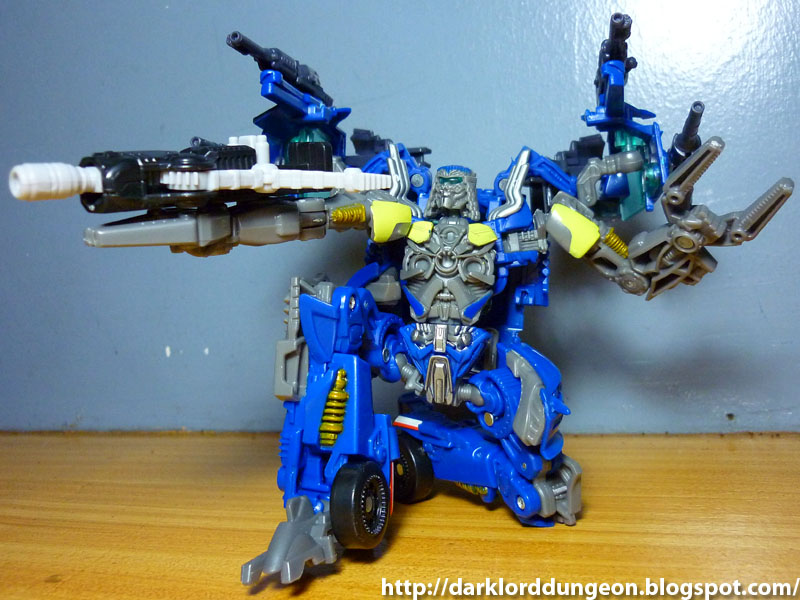 If you're a fan of guns, guns and more guns, then you'll like DOTM Topspin especially in his robot mode. DOTM Topspin comes with four shoulder mounted positionable cannons (Yes, I intentionally mounted them backwards - I think it looks and moves better that way)