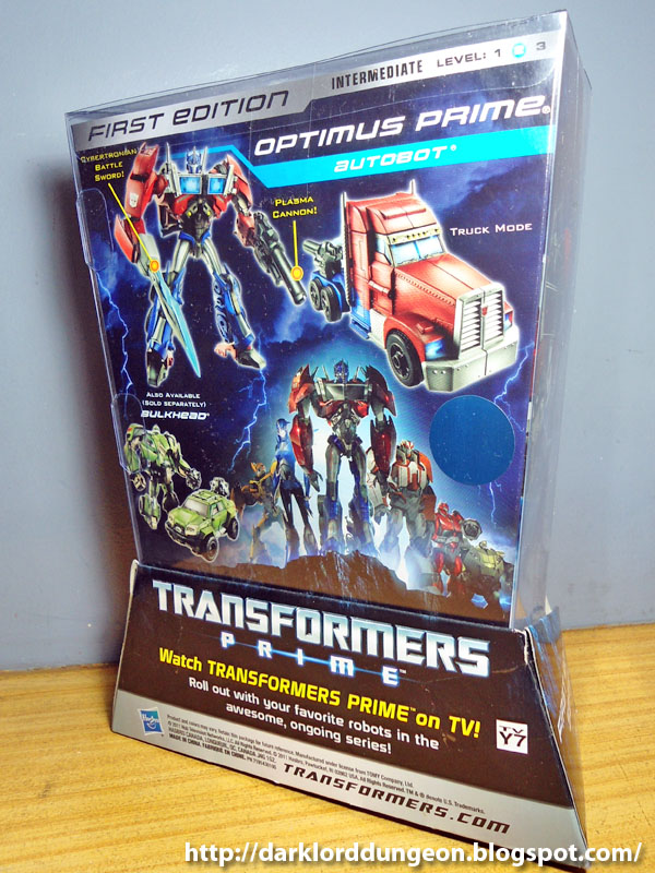 Transformers Prime Voyager Class Optimus Prime debuted on the retail store shelves around December and I got him for Christmas along with Transformers Prime Bulkead. But since Transformers Prime: Optimus Prime is quite common and Bulkhead was rarer - and has those lovely baby-blue eyes - I came out with him just now.Transformers Prime Voyager Class Optimus Prime was purchased at the retail price of PhP 1,499.75 (Roughly US$ 34). Strangely he's available on Amazon for a whopping US$ 49.95 (Roughly PhP 2,200 plus shipping), which makes me wonder if he's rare in the U.S. If he is, give a shout out because it might be cheaper for you to get it all the way here from the Philippines where they fill toy-shelves throughout the Metro.